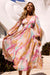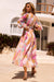 Our All Cloud Burst Midi is a gorgeous style. With empire waist details and flowy long sleeves, this is a stand-out style in a gorgeous silhouette. The beautiful shaped hardware on the waistline echos the deep v neckline, making this one of our favourites for summer looks.