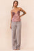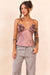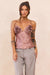 Feels like wearable romance—delicate straps meet a soft, sculpted bodice, while the hand-crafted floral appliqués bloom like a secret garden at dusk. Lightly draped with a subtle sheen, it carries a sense of effortless allure, perfect for sunset dates, summer soirées, or paired with flowing skirts for a dreamy escape.