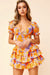Our Korina dress is so fun and flirty! Make a statement with this number, featuring deep v neckline with a tie detail, puffed capped sleeves and a ruffled skirt. We love to wear it with a pair of strappy nude heels.