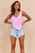 Covered in shimmering sequins with a draped V-neckline, this statement top adds instant glamour to any look. Perfect for pairing with denim for a chic daytime sparkle or styling with a mini skirt for an after-dark party vibe.