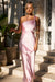 This elegant satin maxi dress features a chic asymmetrical one-shoulder design with delicate pleated detailing. The fitted bodice accentuates the waist, flowing into a soft A-line silhouette for a sophisticated and graceful look. The back showcases a stylish crossover strap detail, adding a modern touch to the timeless design. Perfect for special occasions, this dress effortlessly combines elegance and contemporary charm.