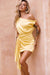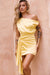 We're loving the Still Lovers mini dress. This drapey satin number features an asymmetric off shoulder sleeve, ruched skirt detailing and a tie front. Pair it with your fave heels and show off those gorgeous pins!