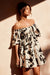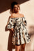 • Black print mini dress.